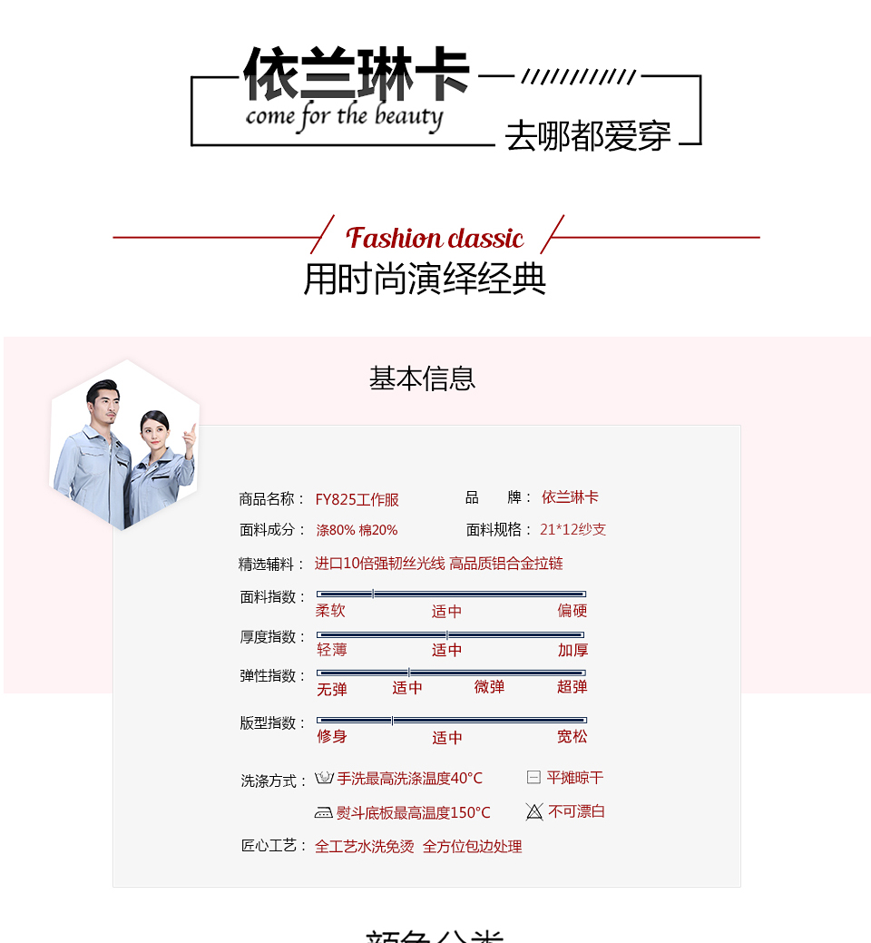 - 標簽:經典春秋工作服高密滌棉紗卡FY825
