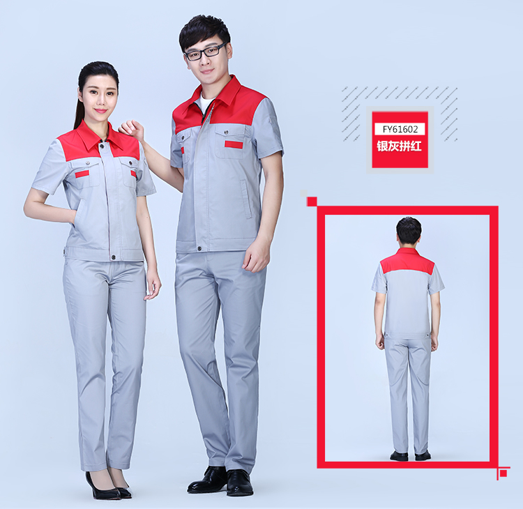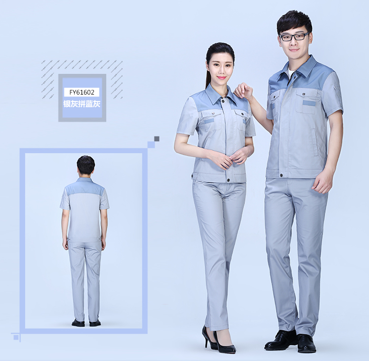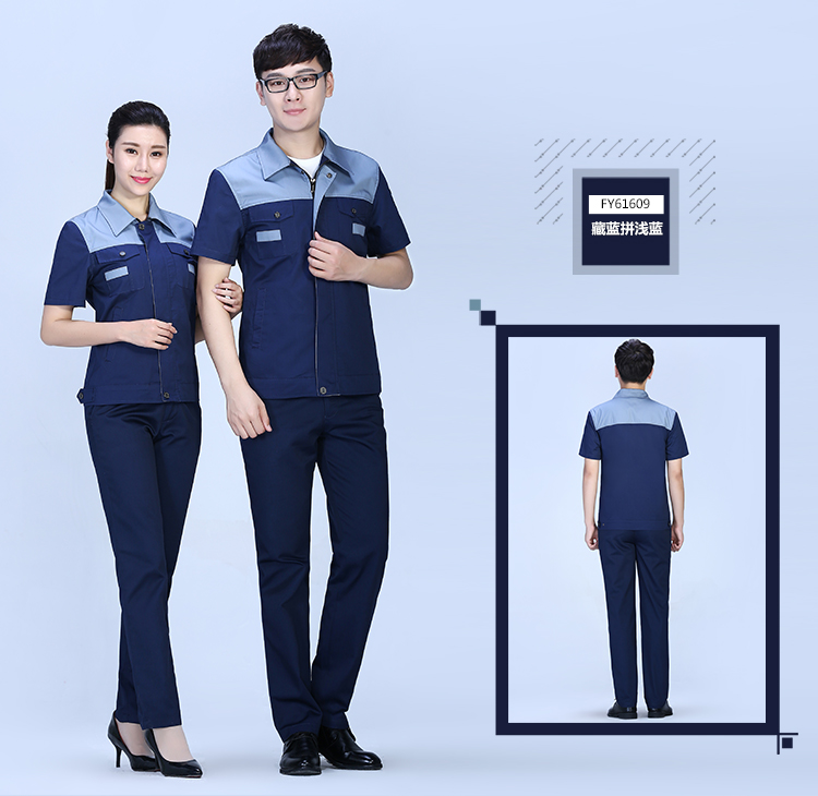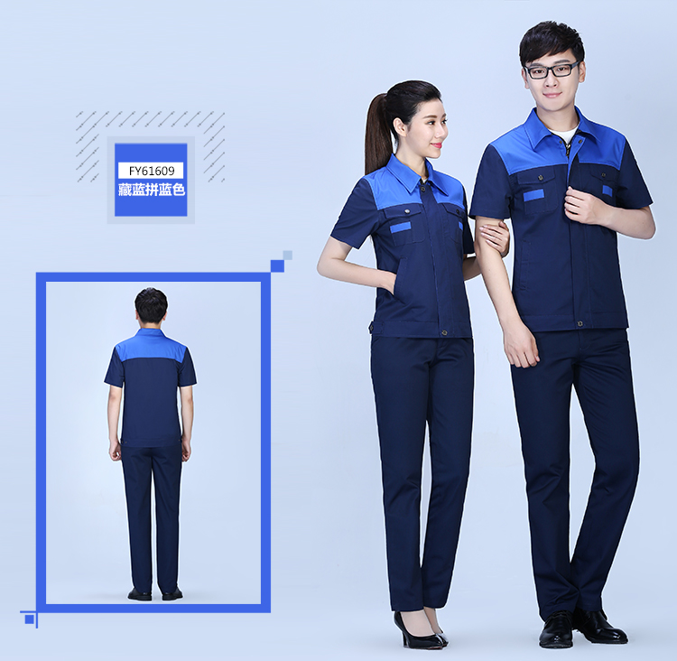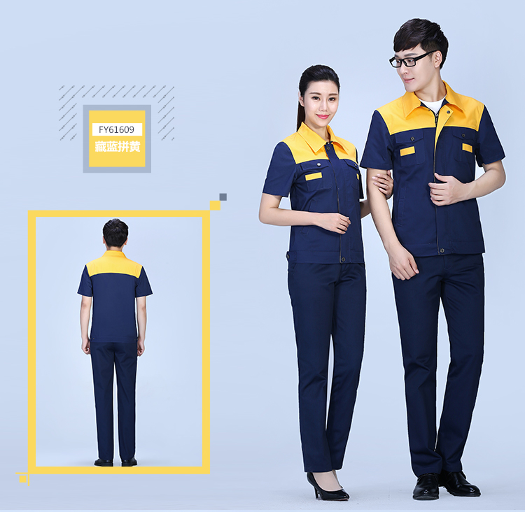 相關時尚撞色拼接夏季滌棉細斜短袖工作服FY616推薦
