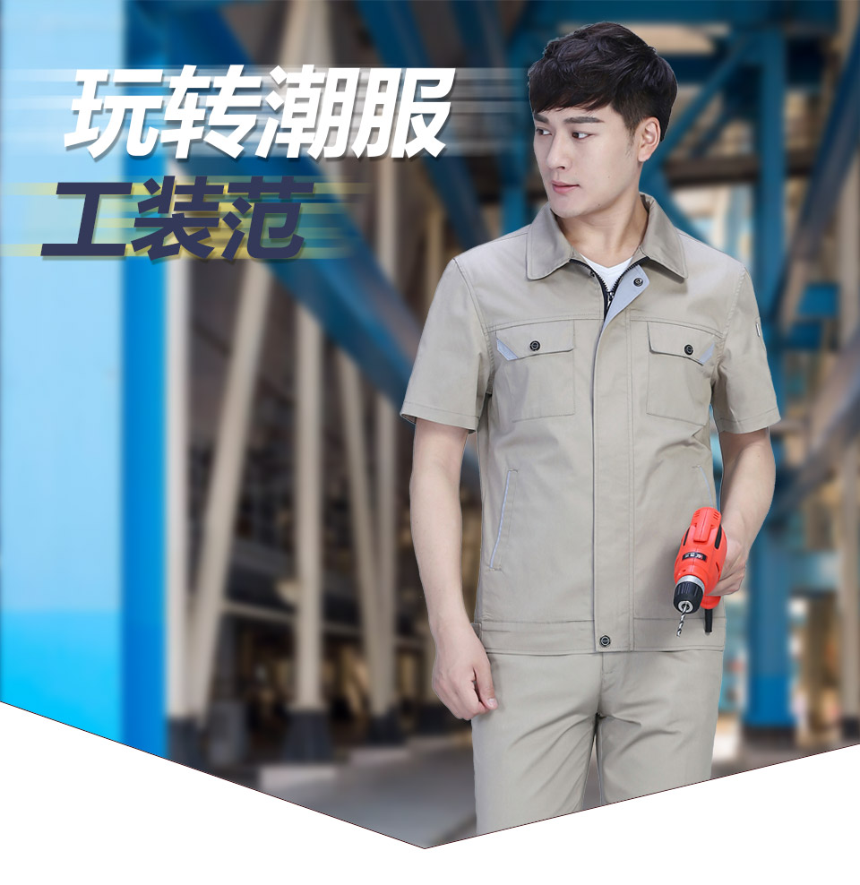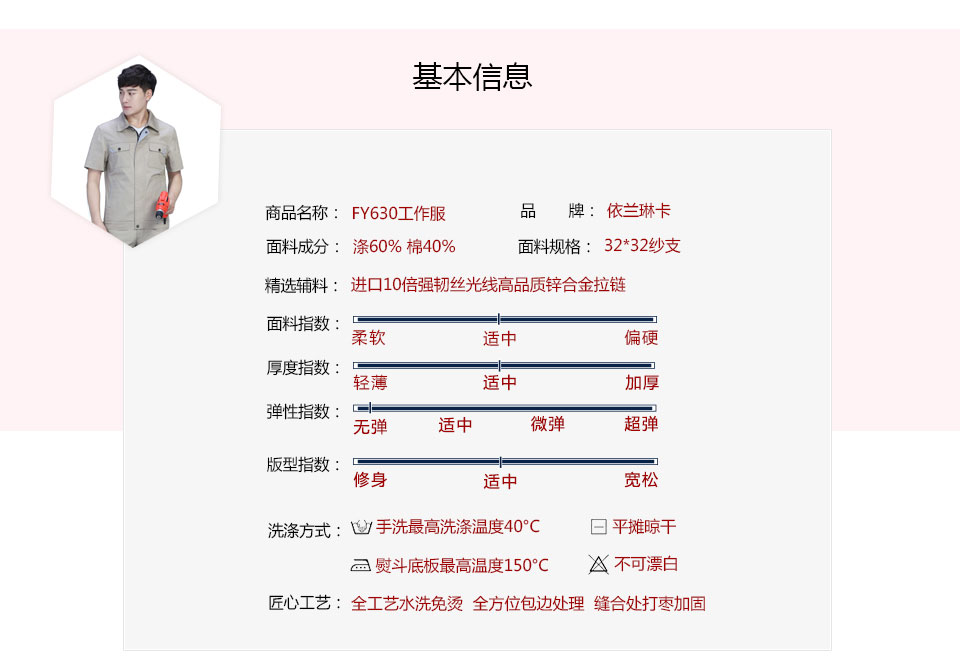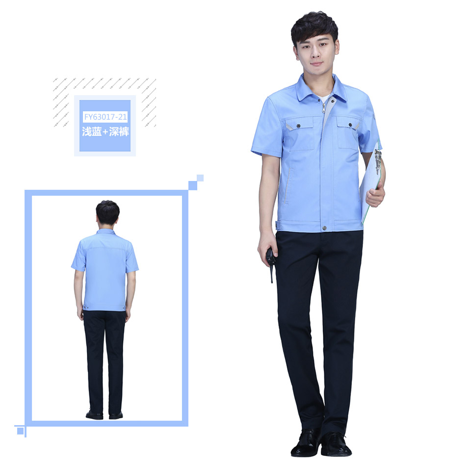 相關細節拼色夏季滌棉細斜短袖工作服FY30推薦