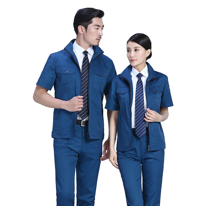 時尚夏季合體滌棉細斜短袖工作服FY621