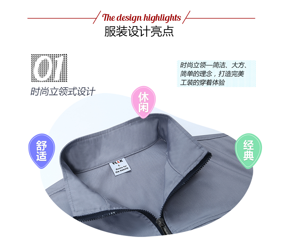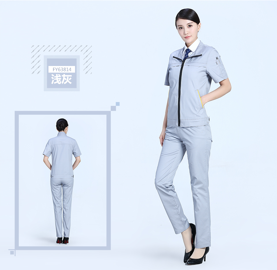 相關寶藍色拉鏈夏季時尚細斜短袖工作服FY638推薦