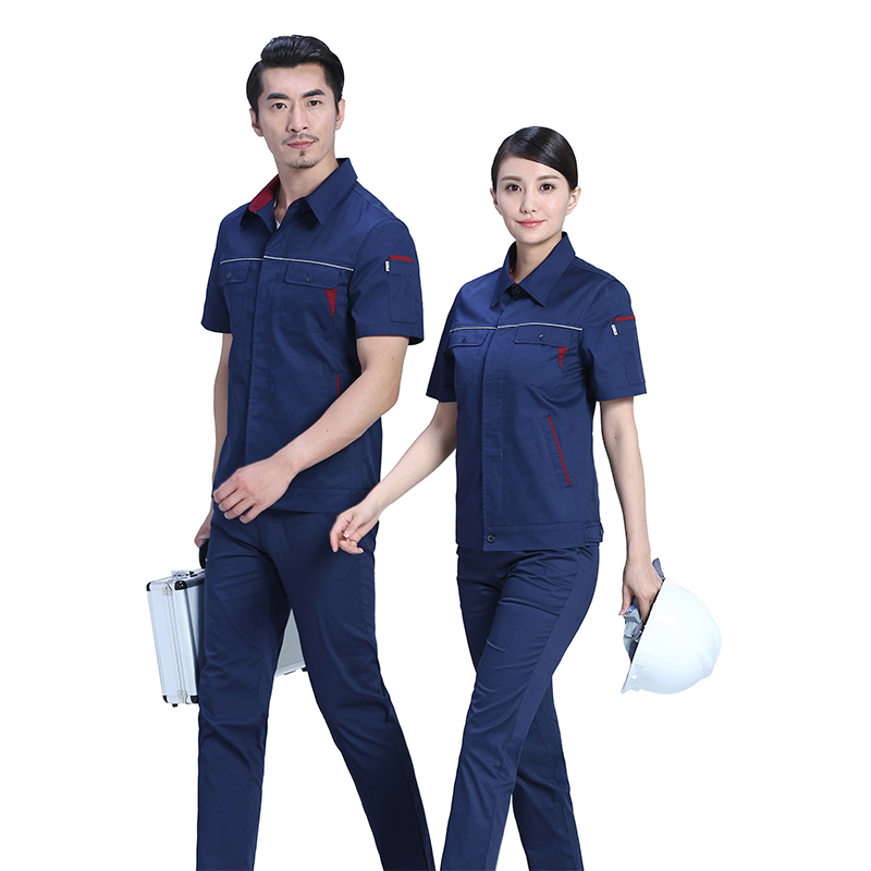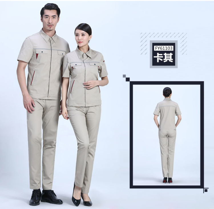 夏季時尚合體滌棉細斜短袖工作服FY611