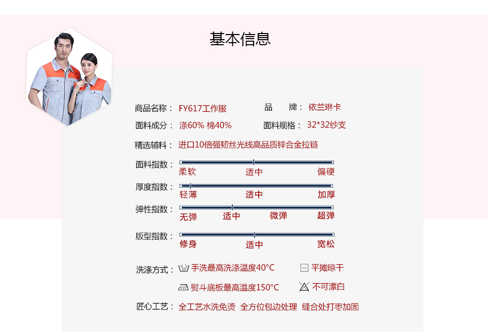 - 標簽:時尚桔色拼接滌棉細斜短袖工作服FY617