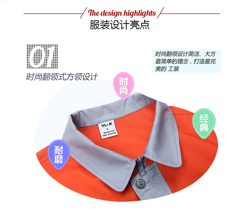 標簽: 時尚桔色拼接滌棉細斜短袖工作服FY617